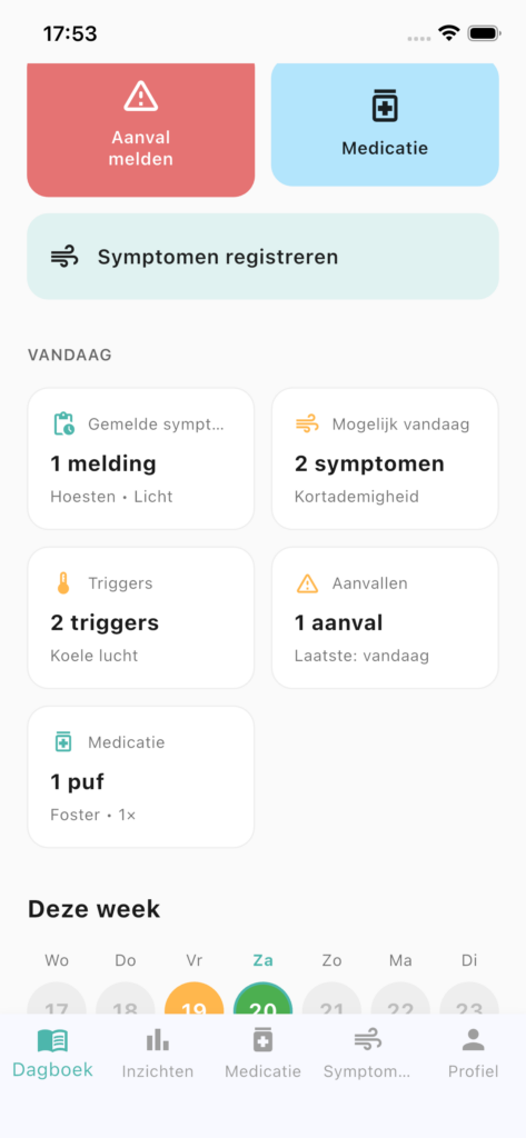 Astma onder controle begint met inzicht. Daarom lanceren we binnenkort Mijn Astmadagboek: een eenvoudige en praktische app waarmee je jouw astmaklachten, medicatie en triggers overzichtelijk bijhoudt. Geen losse notities meer, maar alles op één plek.